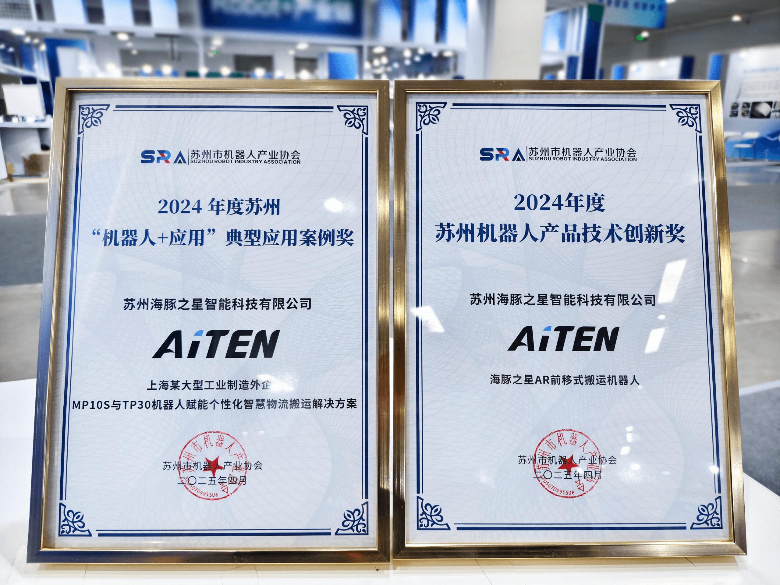 在2025年第五届苏州市机器人产业发展大会上,公司一举斩获2024年度"机器人+应用"典型应用案例奖“和"苏州机器人产品技术创新奖"两项殊荣。这标志着其创新实力再获权威认证。
